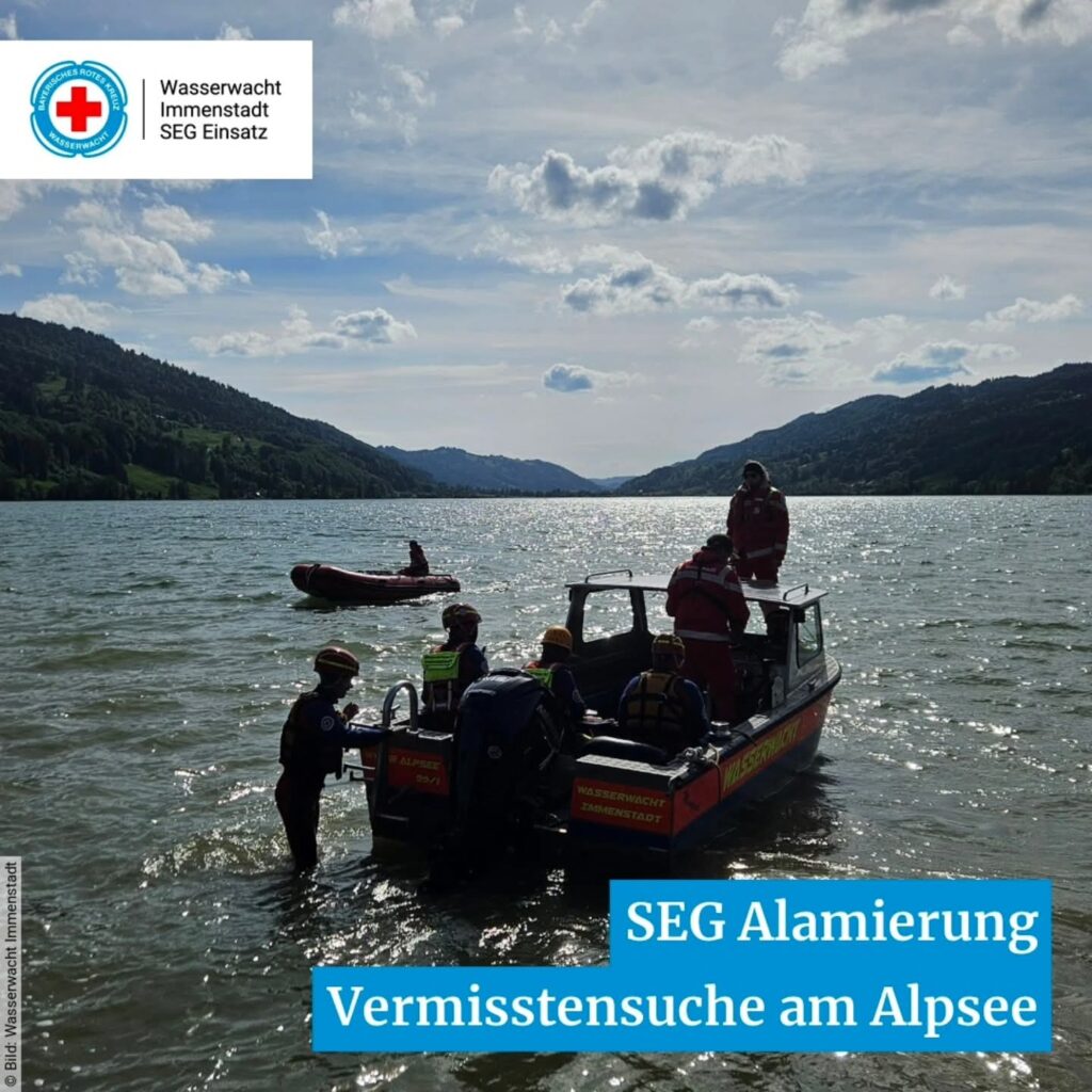 Mit 10 Wasserrettern, 3 Tauchern und 2 Booten waren wir am Großen Alpsee im Einsatz.